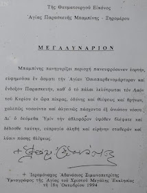 Ώρα 7:00 μ.μ Μέγας πανηγυρικός Εσπερινός μετ' αρτοκλασίας.