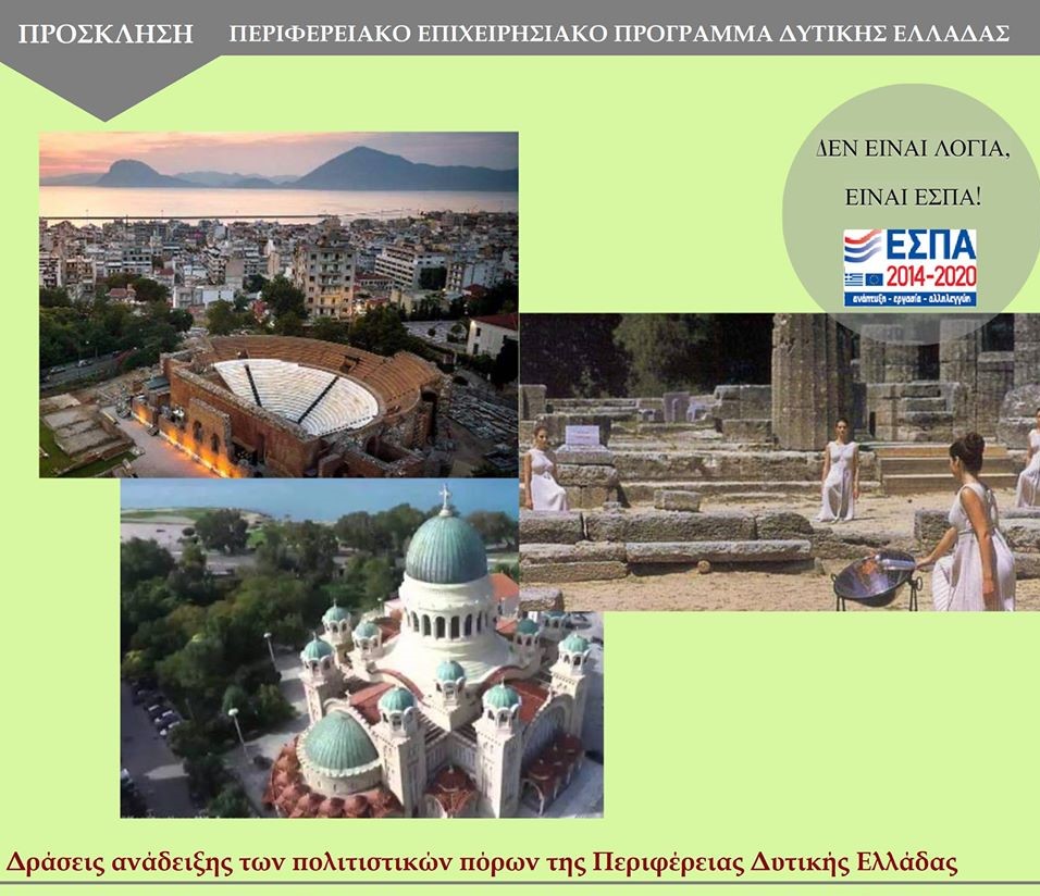Στόχος της δράσης είναι η ανάδειξη και η προστασία της πολιτιστικής κληρονομιάς που διαθέτει η Περιφέρεια Δυτικής Ελλάδας. Στο πλαίσιο αυτό μπορούν αν χρηματοδοτηθούν έργα και ενέργειες αξιοποίησης, αποκατάστασης, ανάδειξης και προβολής των πολιτιστικών πόρων και των τριών Περιφερειακών ενοτήτων, όπως Μνημεία, Σύνολα και Αρχαιολογικοί Χώροι, πολιτιστικές διαδρομές με έμφαση στη βελτίωση τόσο της επισκεψιμότητας και αντιληπτότητας των μνημείων και των χώρων, όσο και της ελκυστικότητας των μουσειακών εκθέσεων, καθώς και στην αναβάθμιση του επιπέδου των υπηρεσιών που προσφέρονται στους επισκέπτες.