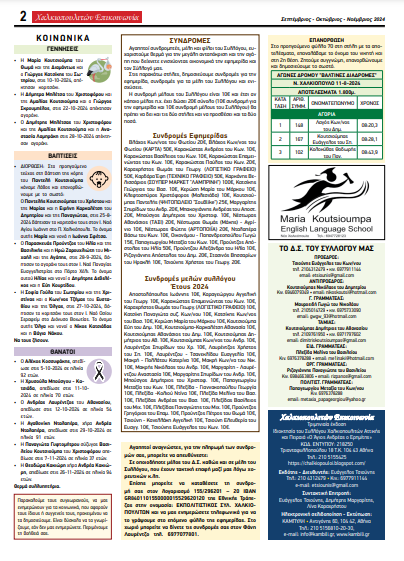 Το 2025 αποτελεί για τον σύλλογό μας ένα ορόσημο, καθώς συμπληρώνει 50 χρόνια από την ίδρυσή του. Όπως θα δείτε στην 1η σελίδα της εφημερίδας, έχουμε εκδώσει θεματικά Ημερολόγιο, Ατζέντα και Σημειωματάριο. Παρακαλούμε όλους σας να τα προμηθευτείτε. Τηλεφωνήστε μας και θα επιλέξουμε τον τρόπο.